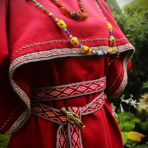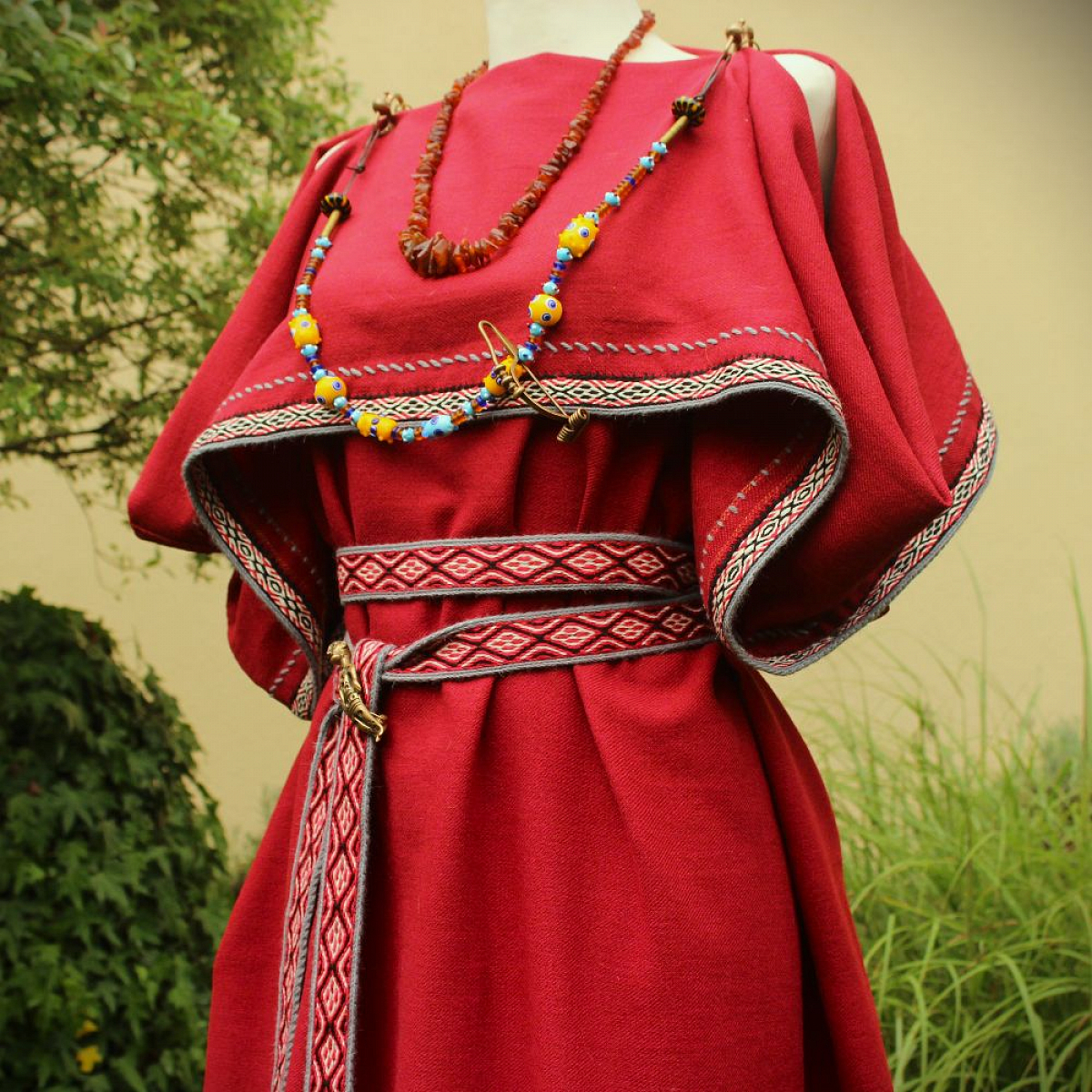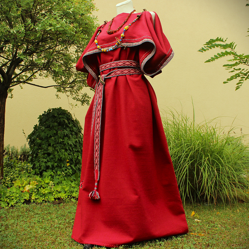 Ručne šitý vlnený peplos na objednávku. Ručne tkaný lem zo 100% vlny.